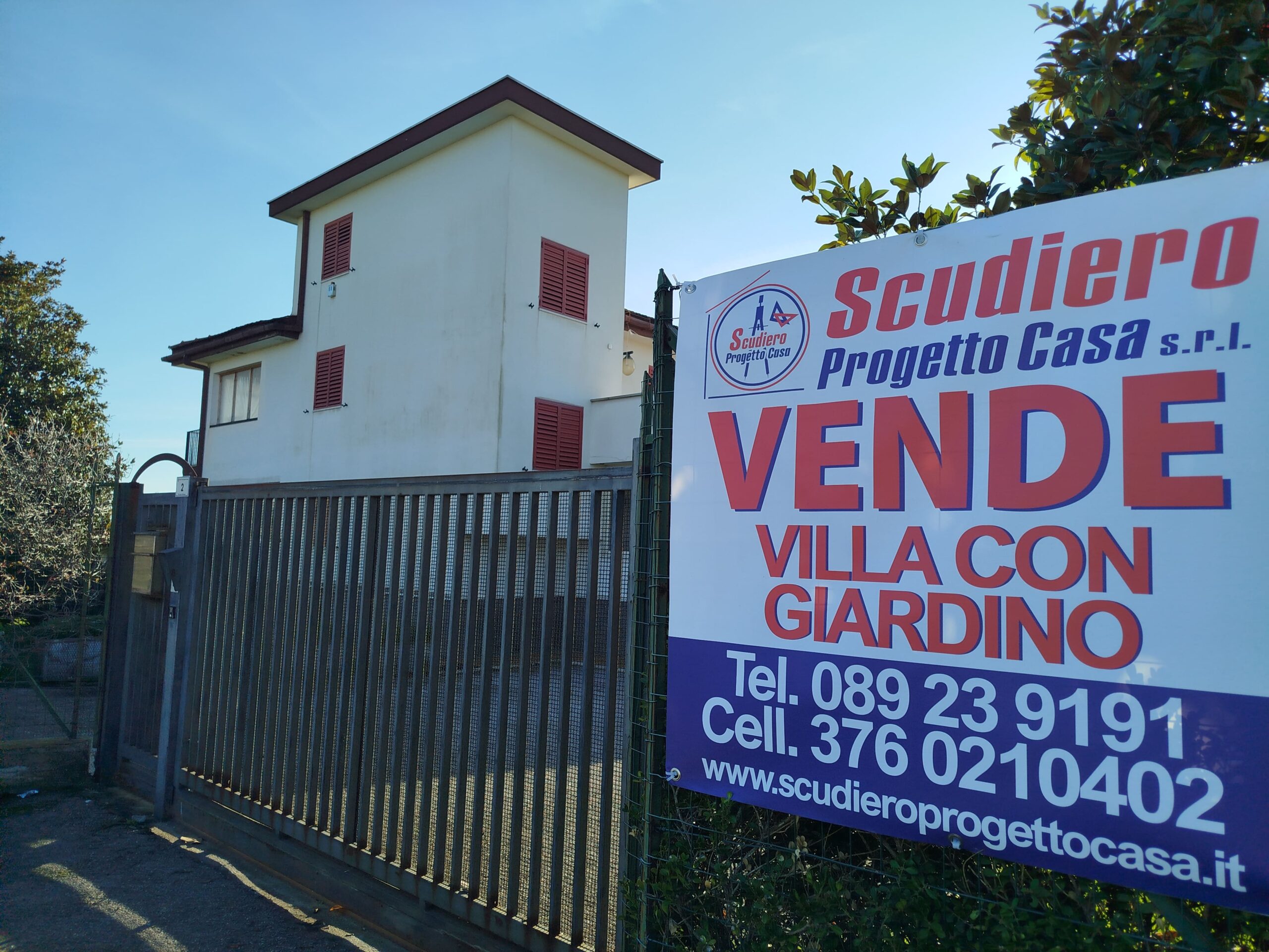 Pontecagnano Faiano(SA), località Magazzeno a poca distanza dal Porto Marina D’arechi e dall’ Aeroporto di Costa d’Amalfi proponiamo in VENDITA UNA SPLENDIDA VILLA INDIPENDENTE, VISTA MARE su due livelli piano terra e piano primo, per una superficie complessiva di 200 mq circa, collegati a mezzo di rappresentativa ampia scala interna. Il piano terra si sviluppa in salone doppio d’ingresso, con caratteristica ampia vetrata prospiciente il giardino, camera da letto, cucina abitabile con camino e bagno. Il piano primo si compone in ampio salone, 2 camere da letto di cui una con cabina armadio, bagno e terrazzo a livello. La villa si presenta in buone condizioni manutentive, pavimento in cotto e parquet, porte interne in legno massello, riscaldamento autonomo. Il giardino attrezzato circostante la villa , ha una superficie di 400 mq circa parte pavimentato e parte a prato verde. Ottima posizione, strategica, a pochissima distanza a piedi dal mare. Ideale sia per la collocazione di una famiglia, sia da adibire a struttura turistico ricettiva.